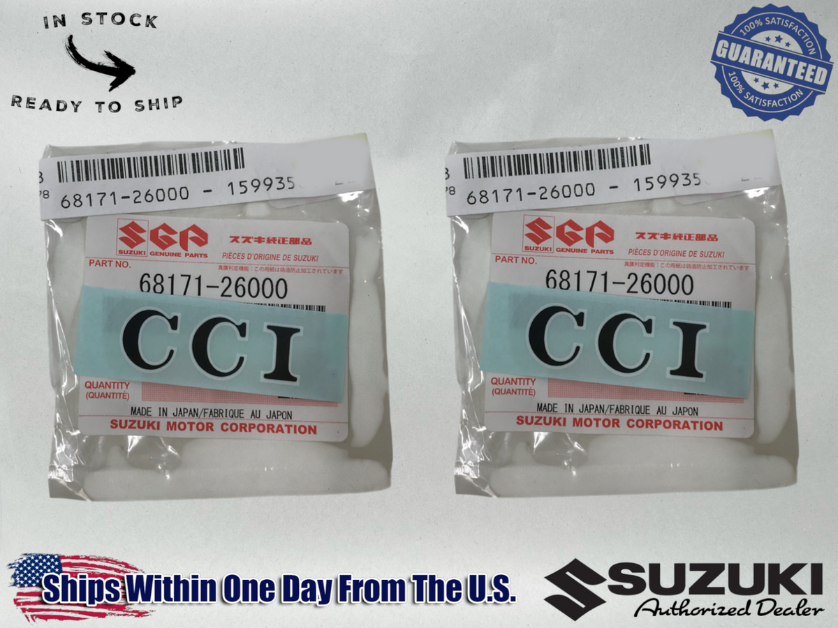 2x Suzuki OEM CCI Side Cover Decal Sticker RV TC T TM TS GT A 68171-26000 Includes Two suzuki 2x Genuine Suzuki CCI Side Cover Decal Emblem Sticker RV TC T TM TS GT A. Experience worry-free riding and enjoy the full potential of your suzuki. Don't compromise on quality when it comes to maintaining your beloved riding companion. Order your kit today and keep your ATV, UTV, motorcycle or dirt bike running at its best. Adventure awaits!