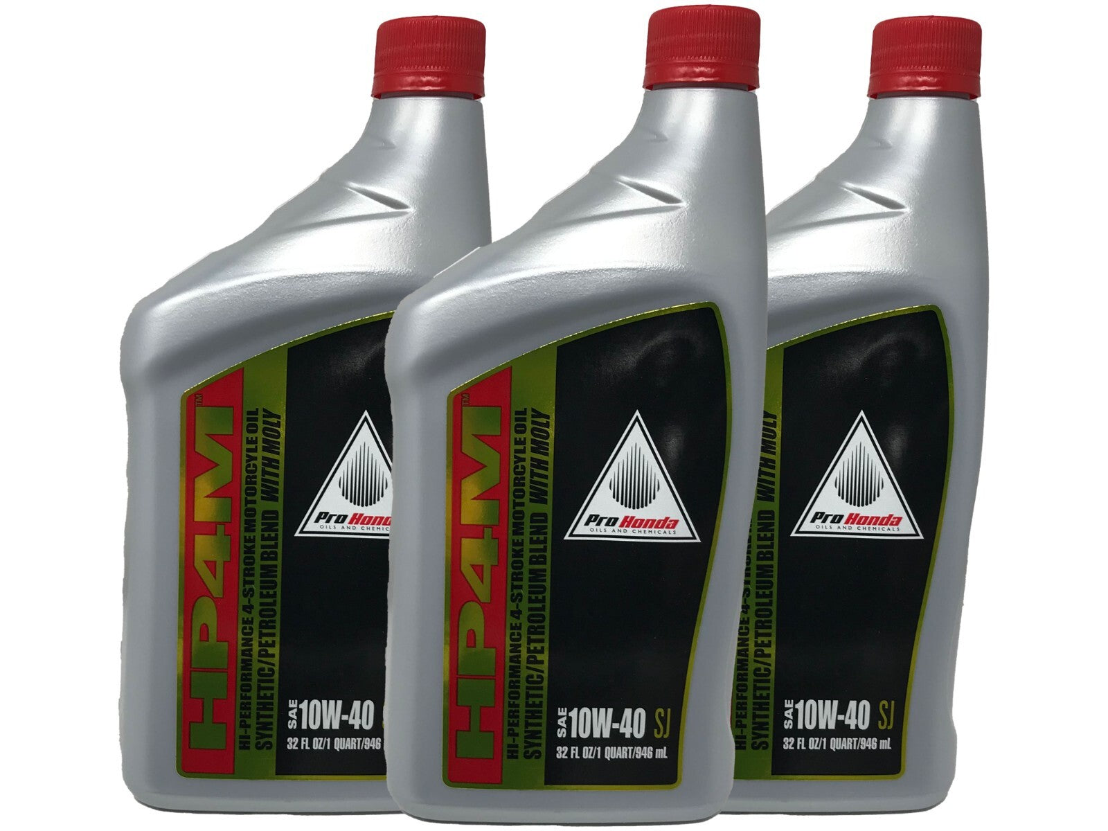 This Kit Includes Three Quarts of Genuine 08C35-A141M02 HP4M Honda 4-Stroke Synthetic Blend 10W-40 Oil. A synthetic/mineral oil blend that combines the very best qualities of both types, HP4M also features a comprehensive additive package and friction-reducing molybdenum compound for smoother shifting, maximum fuel economy and peak horsepower