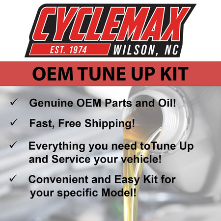 This Tune Up Kit includes Two Quarts of Honda HP4 Semi Synthetic 10W-40 Motor Oil, One Genuine Honda 17254-HM8-000 Air Filter, One OEM NGK DPR7EA-9 Spark Plug, One Crush Washer, and One Disposable Funnel