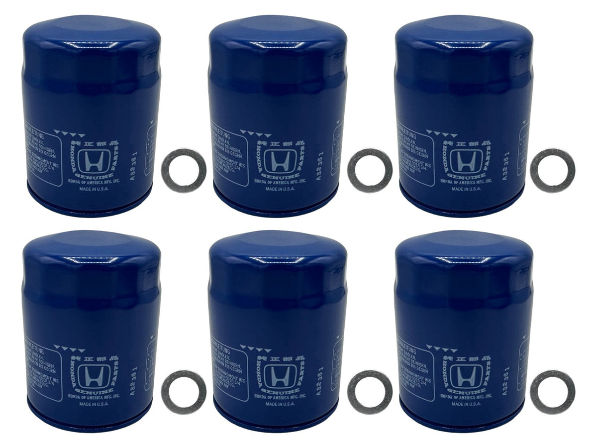 Cyclemax 6 Pack for Honda Genuine OEM Authentic Oil Filter Includes Six Honda Oil Filters, and Six 14mm Drain Plug Crush Washers