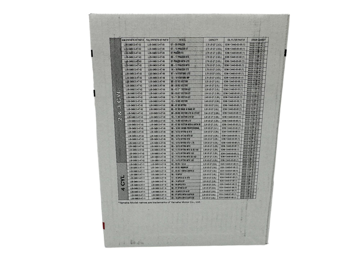 - CYCLEMAX OIL CHANGE KIT INCLUDES: Four Yamaha LUB-00W40-FS-12 Yamalube Full Synthetic 0W40 Quarts of Oil, One Yamaha 5DM-13440-00-00 Oil Filter, Two 6mm Drain Plug Crush Washers, One 10mm Drain Plug Crush Washer and a Convenient Disposable Funnel.