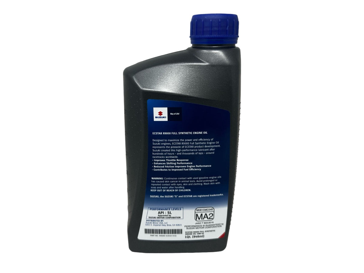- CYCLEMAX OIL CHANGE KIT INCLUDES: Three Suzuki 990A0-01E40-01Q Ecstar Full Synthetic R9000 10W40 Quarts of Oil, One Suzuki 16510-29F00 Oil Filter, One Suzuki 13780-07G00 Air Filter, One CR7E NGK Spark Plug, One Suzuki 09280-54001 Large O-Ring, One Suzuki 09280-13004 Small O-Ring, One 12mm Drain Plug Crush Washer and a Convenient Disposable Funnel.