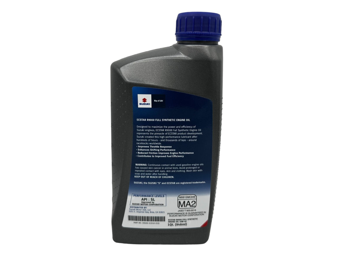 - CYCLEMAX OIL CHANGE KIT INCLUDES: Four Suzuki 990A0-01E40-01Q ECSTAR R9000 10W40 Quarts of Oil, One Suzuki 16510-07J00 Oil Filter, One Suzuki 13780-07G00 Air Filter, One CR7E NGK Spark Plug, One 14mm Drain Plug Crush Washer and a Convenient Disposable Funnel.