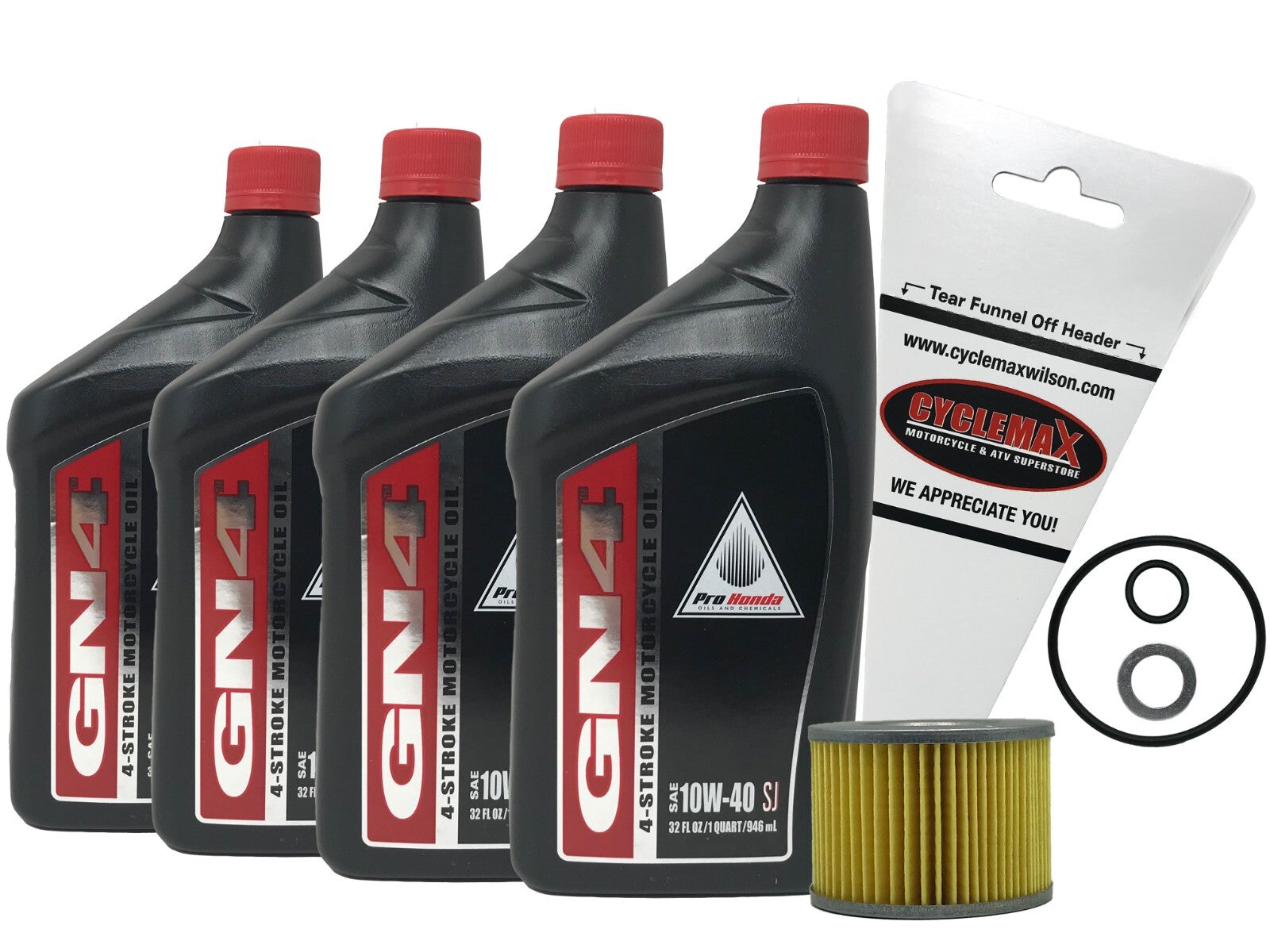 This Oil Change Kit Includes Four Quarts of Genuine Honda GN4 10W-40 Motor Oil, One Genuine 15410-426-010 Honda OEM Oil Filter, One 14mm Crush Washer, and a Convenient Disposable Funnel