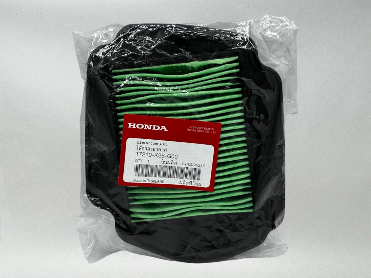 Honda Genuine OEM Authentic Air Filter 17210-K26-G00 Includes One Honda Air Filter. Experience worry-free riding and enjoy the full potential of your Honda. Don't compromise on quality when it comes to maintaining your beloved riding companion. Order your parts today and keep your ATV, UTV, motorcycle or dirt bike running at its best. Adventure awaits!