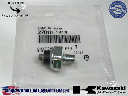 Kawasaki OEM 1981-25 OIL PRESSURE SWITCH BRUTE FORCE PRAIRIE MU 27010-1313 Includes One Kawasaki NEW 1981-2025 OEM KAWASAKI OIL PRESSURE SWITCH BRUTE FORCE PRAIRIE MU 27010-1313. Experience worry-free riding and enjoy the full potential of your Kawasaki. Don't compromise on quality when it comes to maintaining your beloved riding companion. Order your kit today and keep your ATV, UTV, motorcycle or dirt bike running at its best. Adventure awaits!