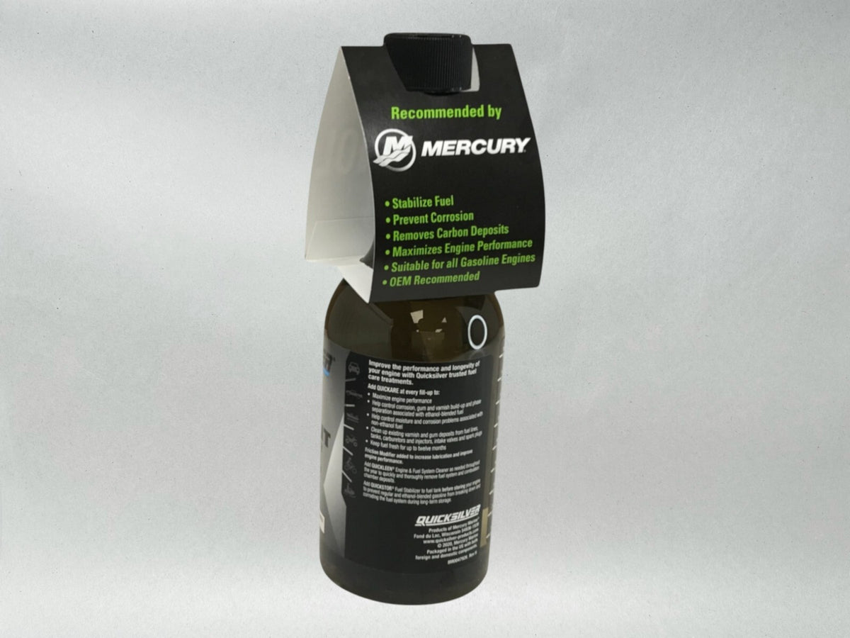 Mercury Genuine OEM Authentic Quickare Fuel Treatment 12 oz 92-8M0047920 6 Pack Includes Six Mercury Quickare Fuel Treatment 12 oz. Experience worry-free riding and enjoy the full potential of your Mercury. Don't compromise on quality when it comes to maintaining your beloved marine companion. Order your kit today and keep your watercraft running at its best. Adventure awaits!