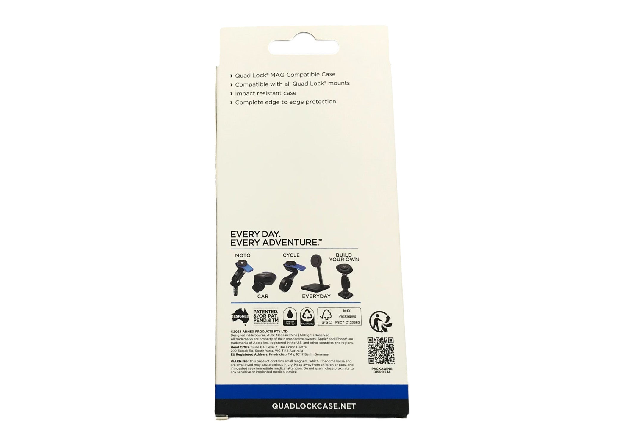 The slim profile and soft touch material make it perfect for everyday use. Quad Lock MAG™ Cases are thinner and flatter than Original Cases, and feature a customizable MAG Ring.