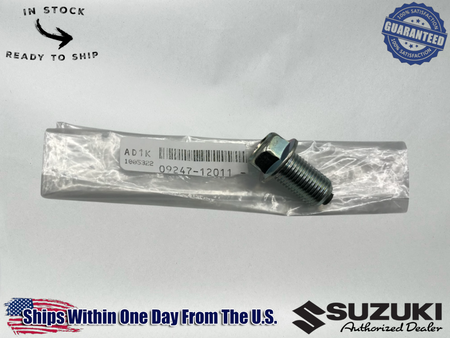 Suzuki OEM OIL PAN PLUG SAVAGE 650 SV650/S/A DRZ400/SM/S/E 09247-12011 Includes One Suzuki SUZUKI OIL PAN PLUG VSTROM 650 SAVAGE 650 SV650/S/A DRZ400/SM/S/E. Experience worry-free riding and enjoy the full potential of your Suzuki. Don't compromise on quality when it comes to maintaining your beloved riding companion. Order your kit today and keep your ATV, UTV, motorcycle or dirt bike running at its best. Adventure awaits!