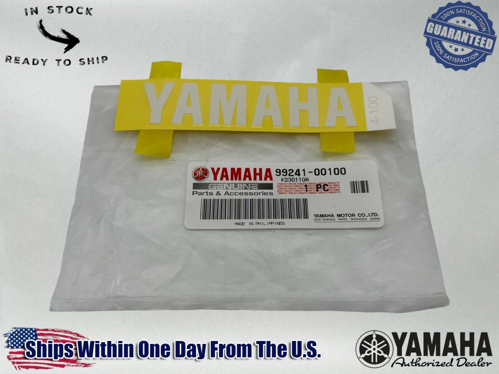 Yamaha Genuine OEM Authentic Vinyl Logo Emblem 99241-00100-00 Includes One Yamaha Vinyl Logo Emblem. Experience worry-free riding and enjoy the full potential of your Yamaha. Don't compromise on quality when it comes to maintaining your beloved riding companion. Order your parts today and keep your ATV, UTV, motorcycle or dirt bike running at its best. Adventure awaits!CONTAINS: One Genuine OEM Authentic Yamaha 99241-00100-00 Vinyl Logo Emblem.QUALITY YOU CAN COUNT ON: Includes premium quality products to provide exceptional performance and protection for your Yamaha engine.PROPER FITMENT RESEARCHED BY PROFESSIONALS: Our team of powersports professionals has done the research to make sure this product is compatible with any models associated. If there are any issues with your product please contact us for prompt and friendly customer service.